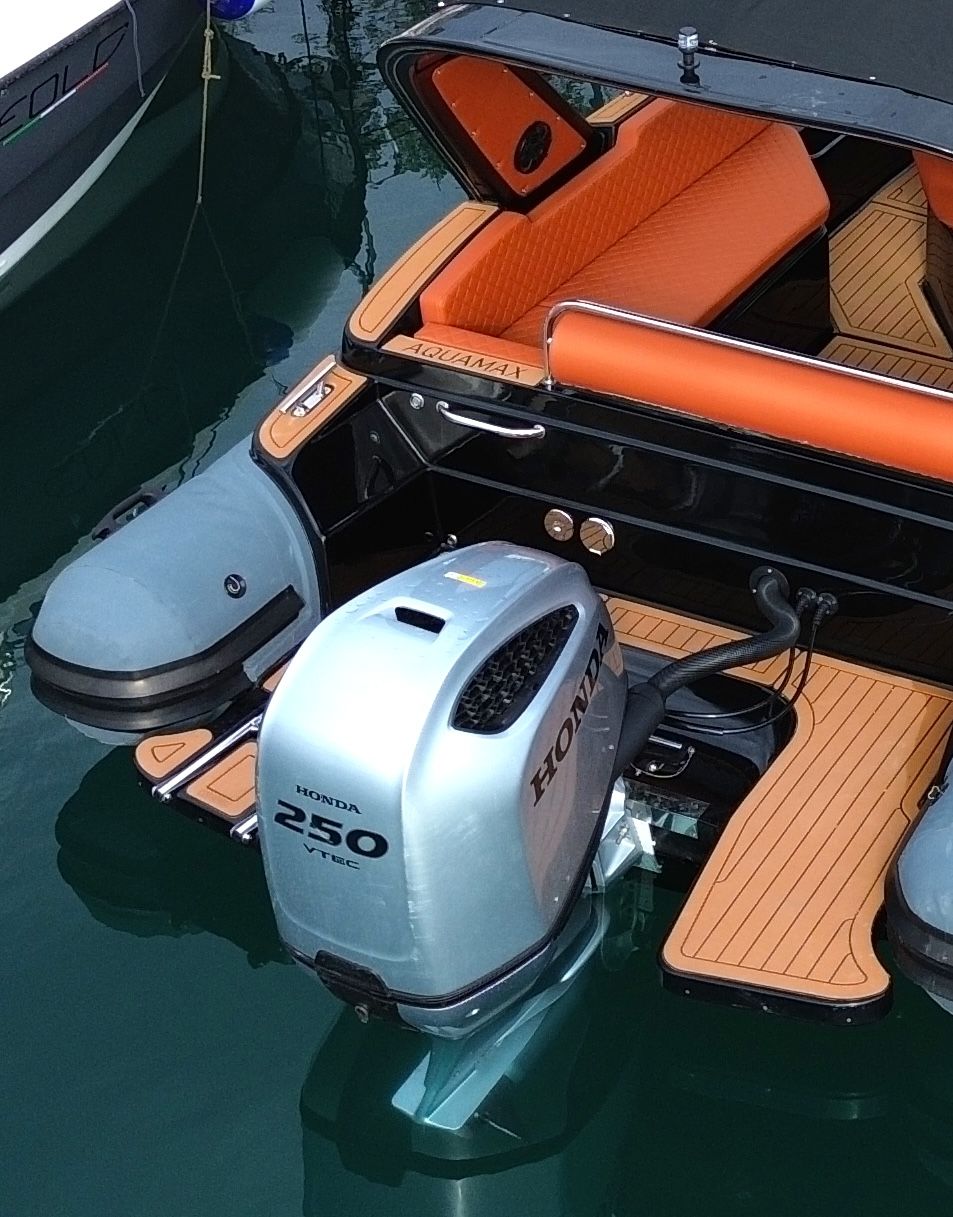 Aquamax B23 idealan je za sve koji žele unaprijediti svoje uživanje na moru, granice ne postoje. Na vaš gliser možete ugraditi širok spektar opcija, uključujući vodootporni radio sa zvučnicima, tuš, pravu ili umjetnu tikovinu, kao i mnoge druge luksuzne elemente. Također, nudimo vam mogućnost personalizacije vašeg plovila, omogućujući vam da odaberete boju trupa, tubusa i tapecirunga prema vlastitim željama. Svi ovi dodaci, uključujući umjetnu ili pravu tikovinu, dat će vašem gliseru sofisticirani i luksuzni izgled.