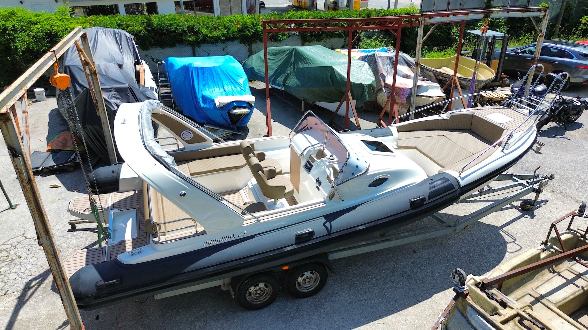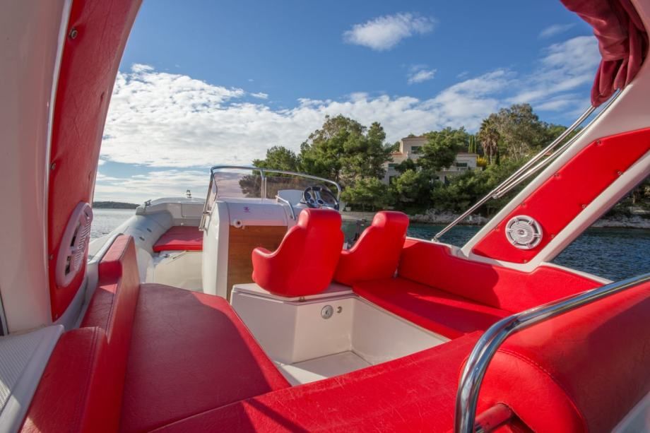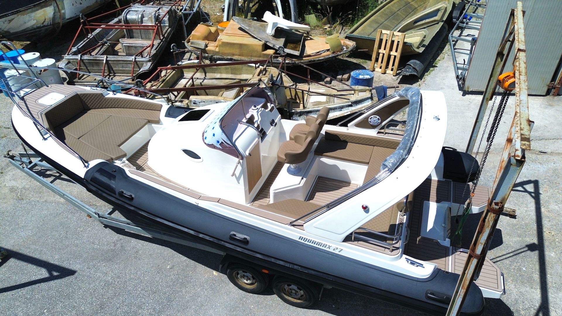 Aquamax B27 je izvanredno plovilo, idealno za duža putovanja i velike udaljenosti. Savršen je izbor za organizirane ture na dugim relacijama, pružajući izniman komfor i sigurnost tijekom plovidbe. Ovaj gliser također predstavlja izvrstan odabir za obitelj, zahvaljujući svojoj prostranosti i udobnosti. Aquamax B27 je vrhunski gumenjak namijenjen onima koji traže puno prostora i uživaju u brzini. Centralna konzola s kabinom za dvije osobe nudi mogućnost individualne prilagodbe opreme, od ležaja do kabine za prtljagu ili transport putnika. Također, plovilo omogućava ugradnju WC-a ili hladnjaka, čime se dodatno podiže udobnost na moru.Plovilo je predviđeno za širok raspon motora, od 225 do 300 KS, čime se omogućuje prilagodba snage prema specifičnim potrebama korisnika, pružajući optimalnu efikasnost i performanse na vodi.